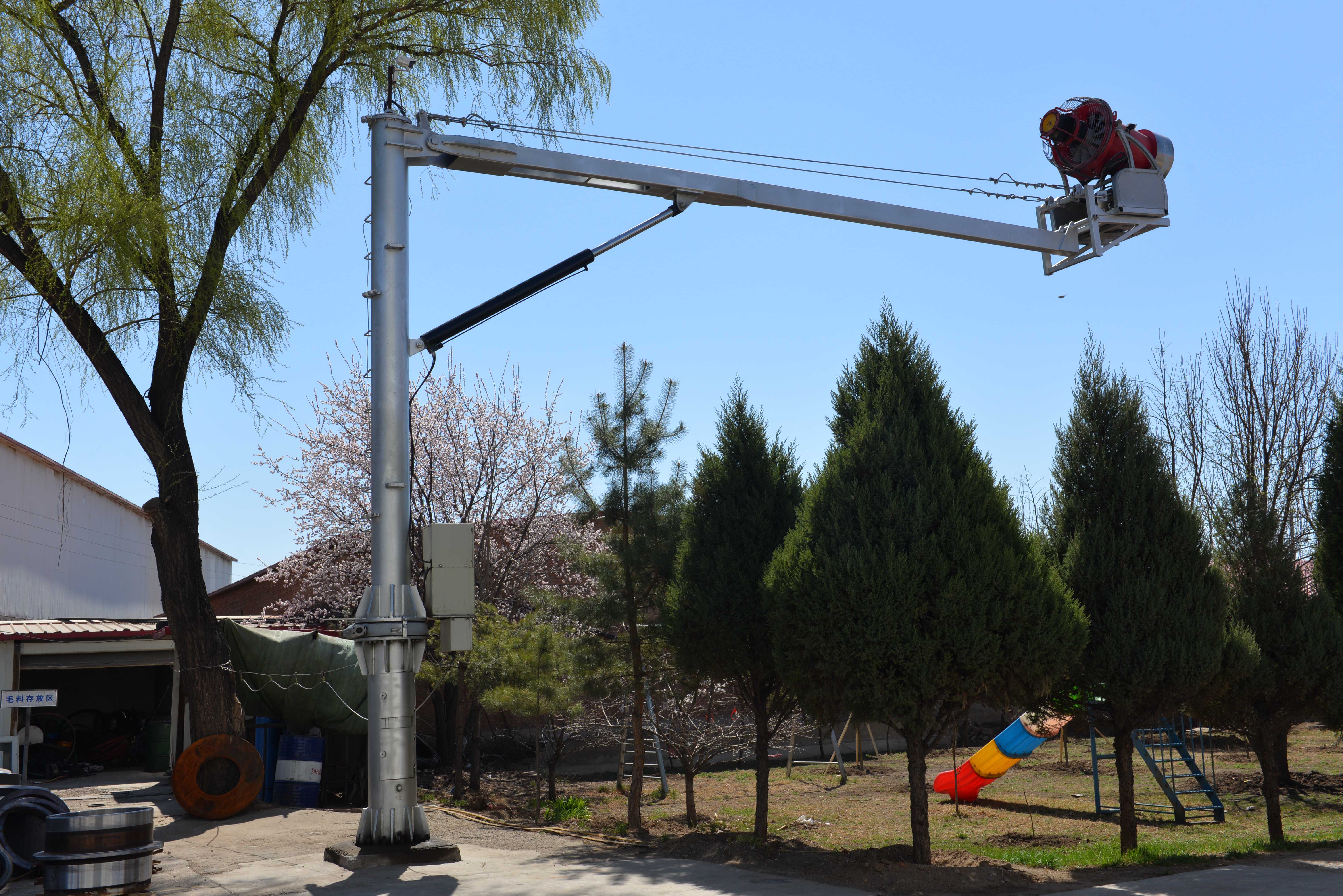 公司自主研发生产的造雪机旋转支架,取得6项国家实用新型专利证书,改变了原有的造雪方式,填补了国内造雪辅助设备的空白。该产品与造雪机配套使用,适配性强,可大幅提高造雪质量,扩大造雪面积,减轻人员劳动强度、降低造雪成本,现在崇礼各大滑雪场都在使用,万龙滑雪场装有450台,云顶滑雪场装有60套,吉林北大壶、太白鳌山、崇礼富龙、翠云山、新疆可可托海、阿勒泰滑雪场共计使用1000套,还有国内很多知 名滑雪场都已使用,并远销日本长野县伊娜滑雪场。产品已被2022冬 奥会滑雪场---云顶滑雪场、延庆冬 奥会赛场所选用,其中在冬 奥会主场延庆高山滑雪场,造雪机旋转支架使用76套,为国产设备助力冬奥增光添彩。